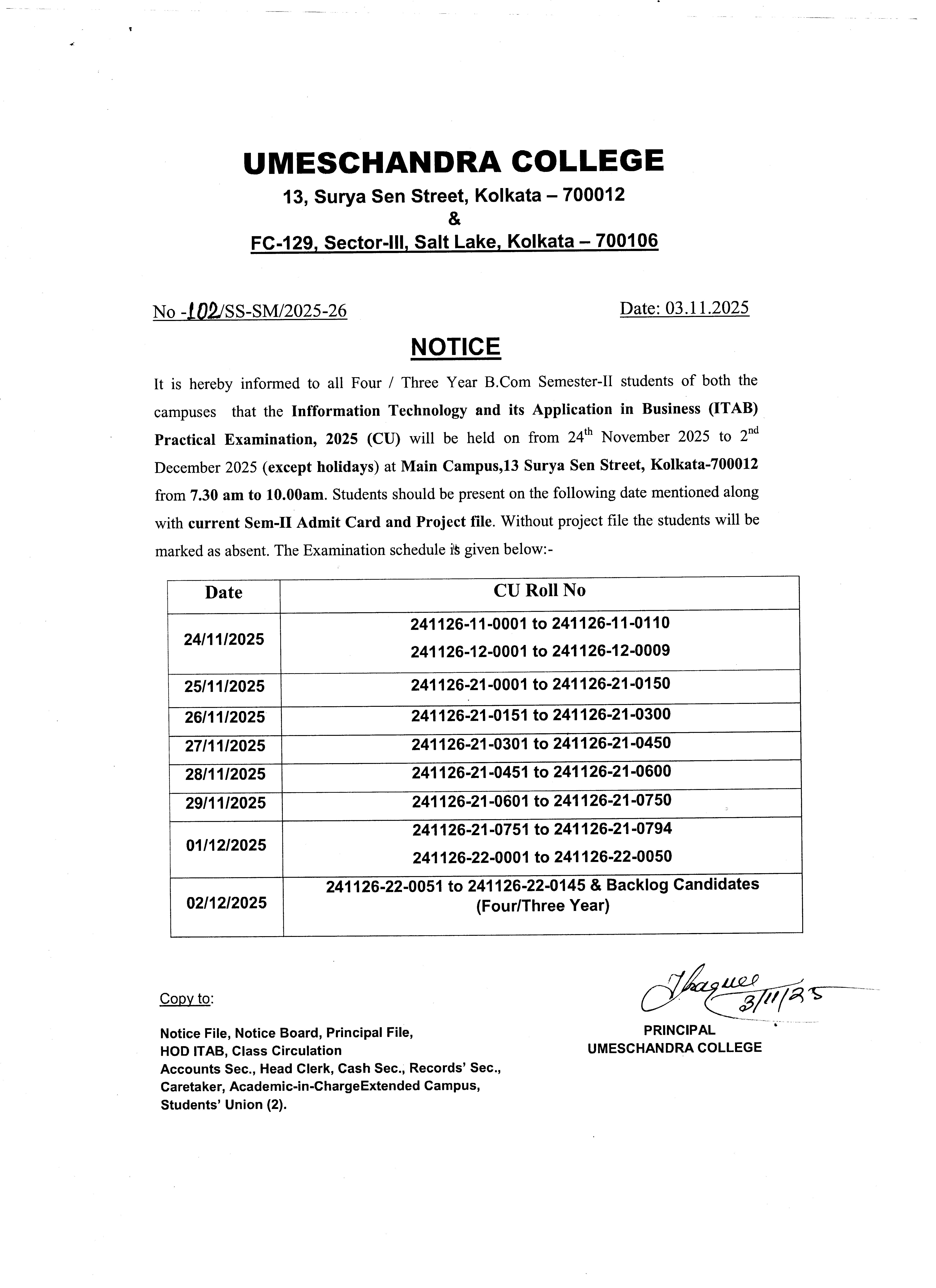 News : B.Com. Semester - II (Hons. & Gen.) ITAB Practical Examination - NOTICE