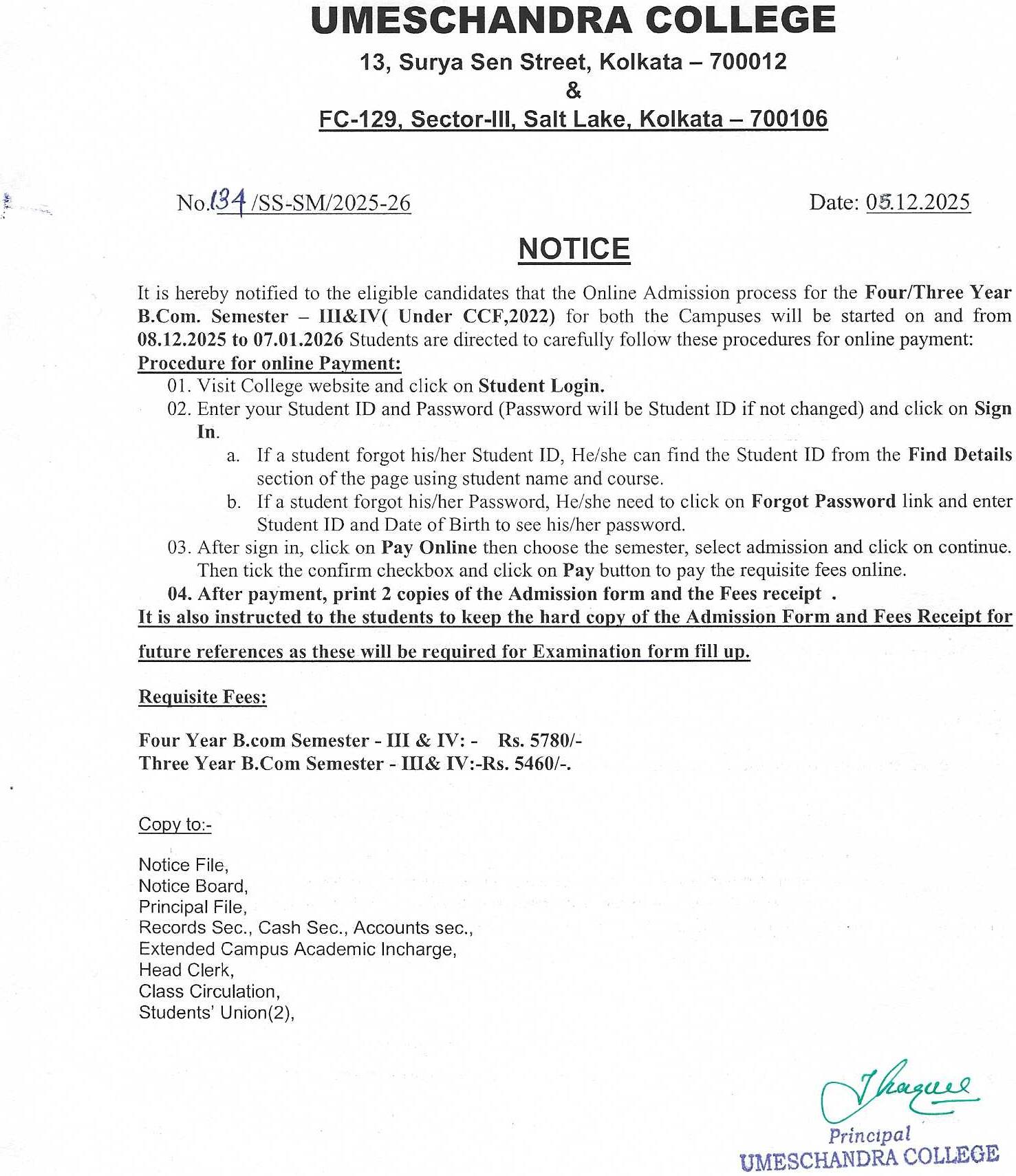 News : NOTICE FOR ADMISSION PROCESS OF FOUR/THREE YEAR B.COM.SEMESTER-III & IV(UNDER CCF,2022)FOR BOTH CAMPUSES WILL BE START ON AND FORM 08.12.2025 TO 07.01.2026.