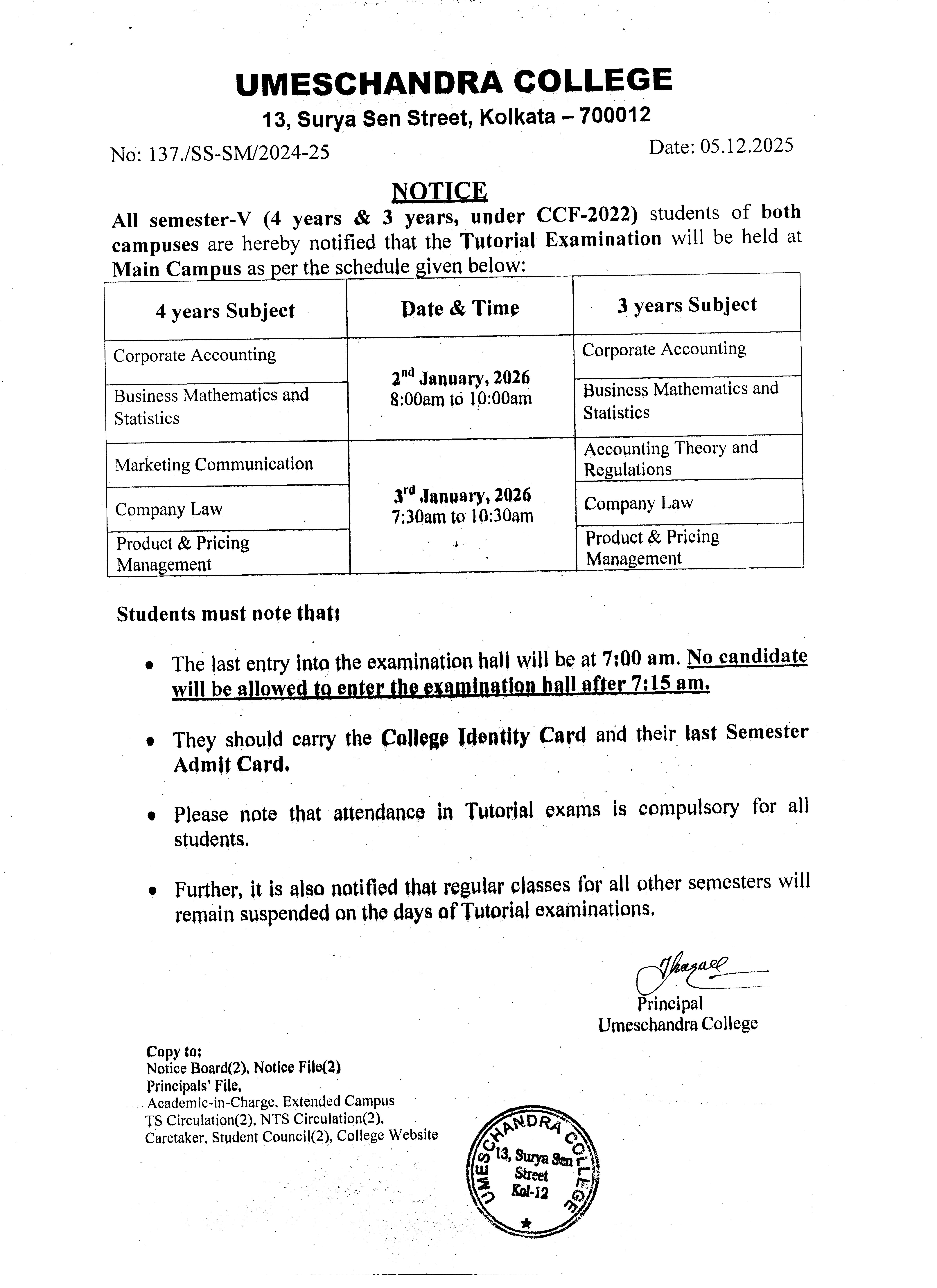News : REVISED NOTICE FOR All SEMESTER-V (4 YEAR & 3 YEARS,UNDER CCF 2022)STUDENTS OF BOTH CAMPUSES ARE HEREBY NOTIFIED THAT THE TUTORIAL EXAMINATION WILL BE HELD AT MAIN CAMPUS AS PER THE SCHEDULE.