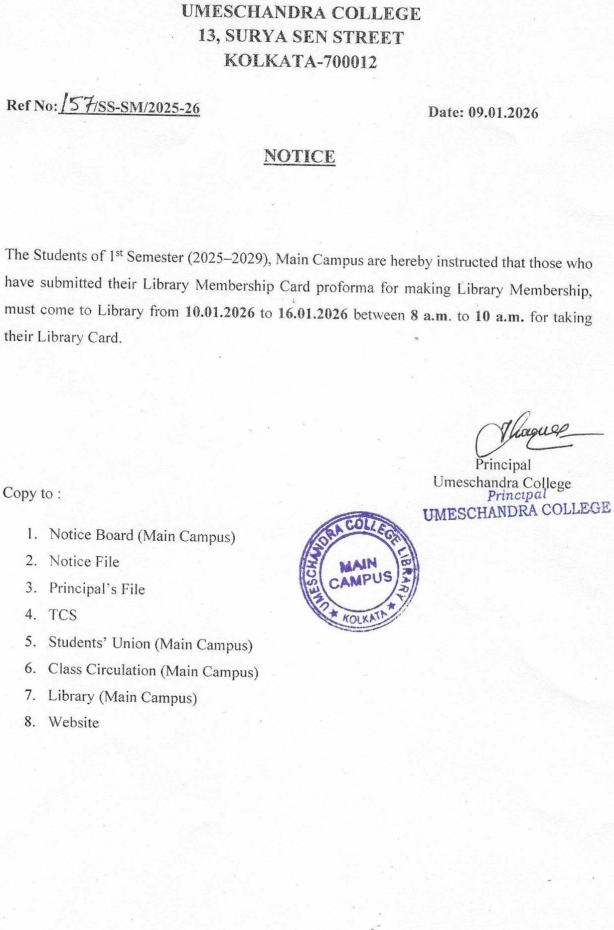 News : NOTICE FOR STUDENTS OF SEMESTER-I LIBRARY CARD.