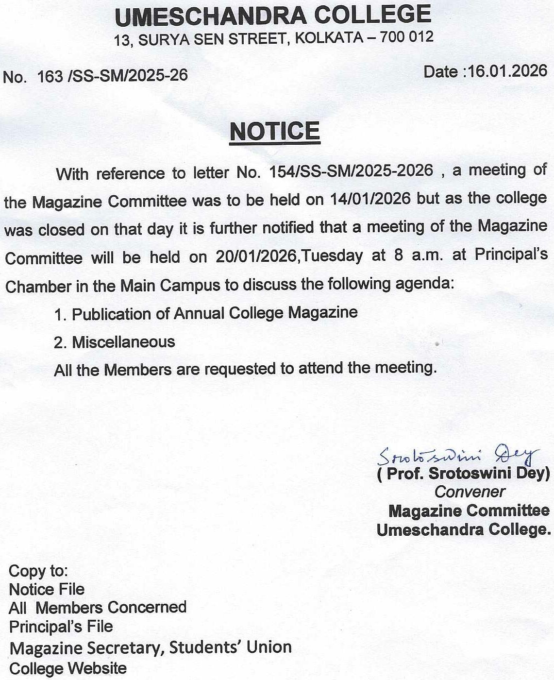 News : NOTICE FOR MAGAZINE COMMITTEE MEETING.