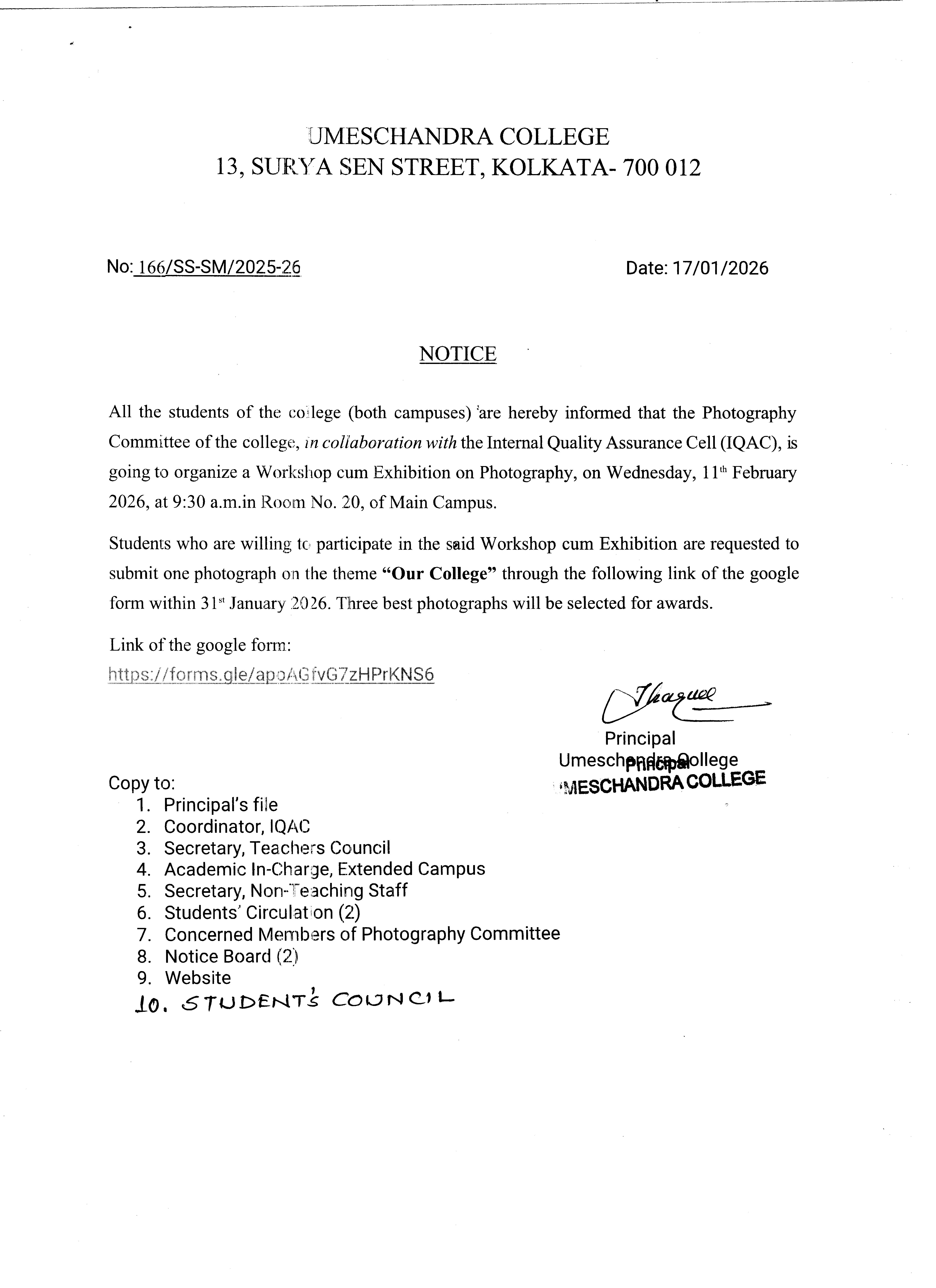 News : NOTICE FOR ALL THE STUDENTS OF THE COLLEGE (BOTH CAMPUS) FOR WORKSHOP CUM EXHIBITION ON PHOTOGRAPHY.