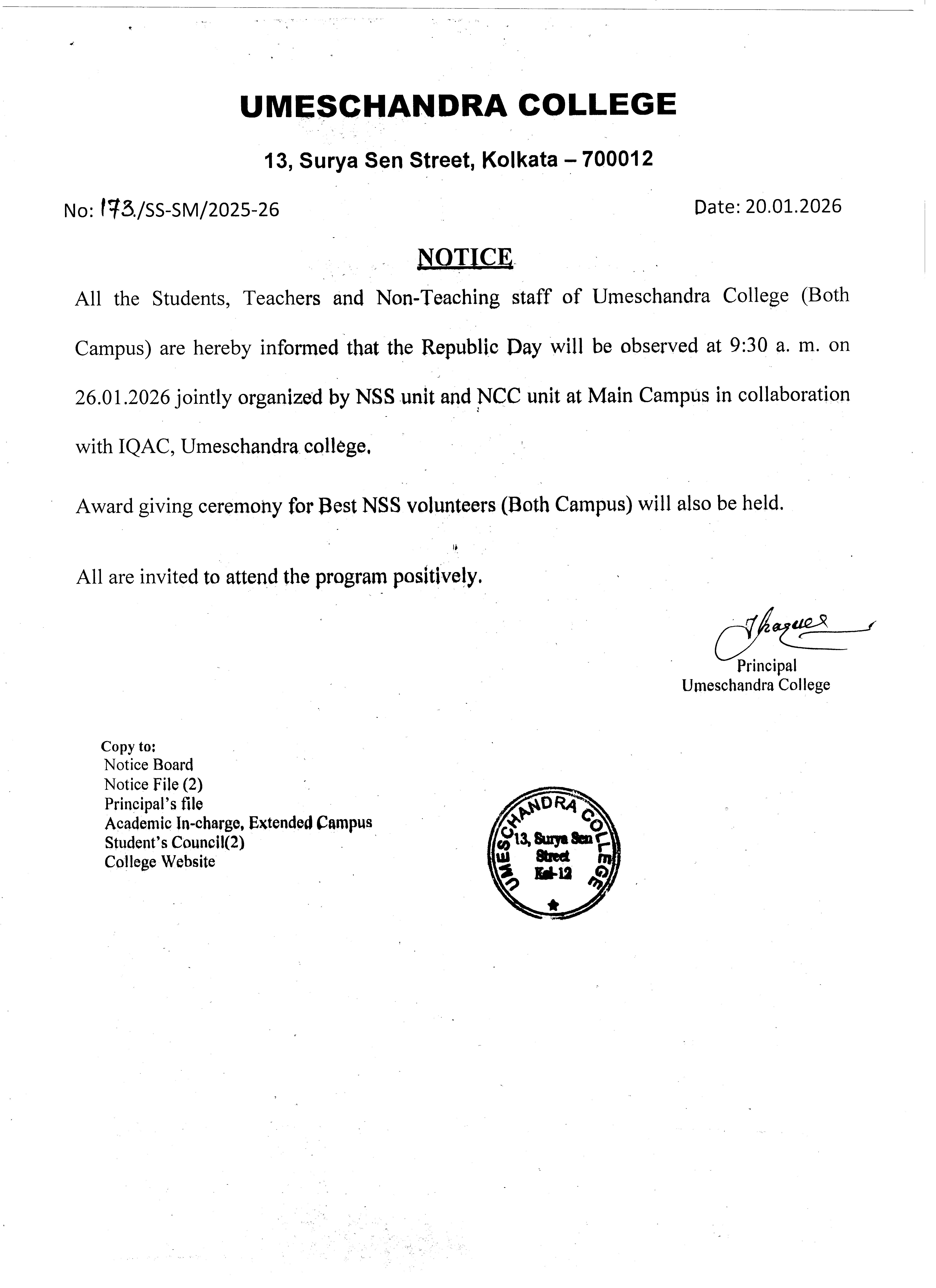 News : Flag Hosting Ceremony on the occasion of Republic Day on 26.01.2026