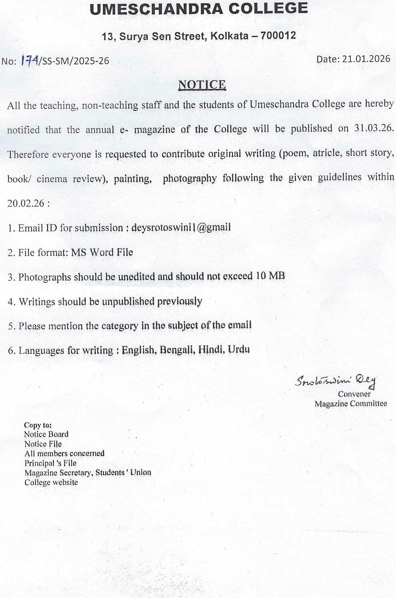 News : NOTICE ABOUT COLLEGE ANNUAL E-MAGAZINE FOR ALL THE TEACHING, NON-TEACHING STAFF AND THE STUDENTS OF U.C.C.