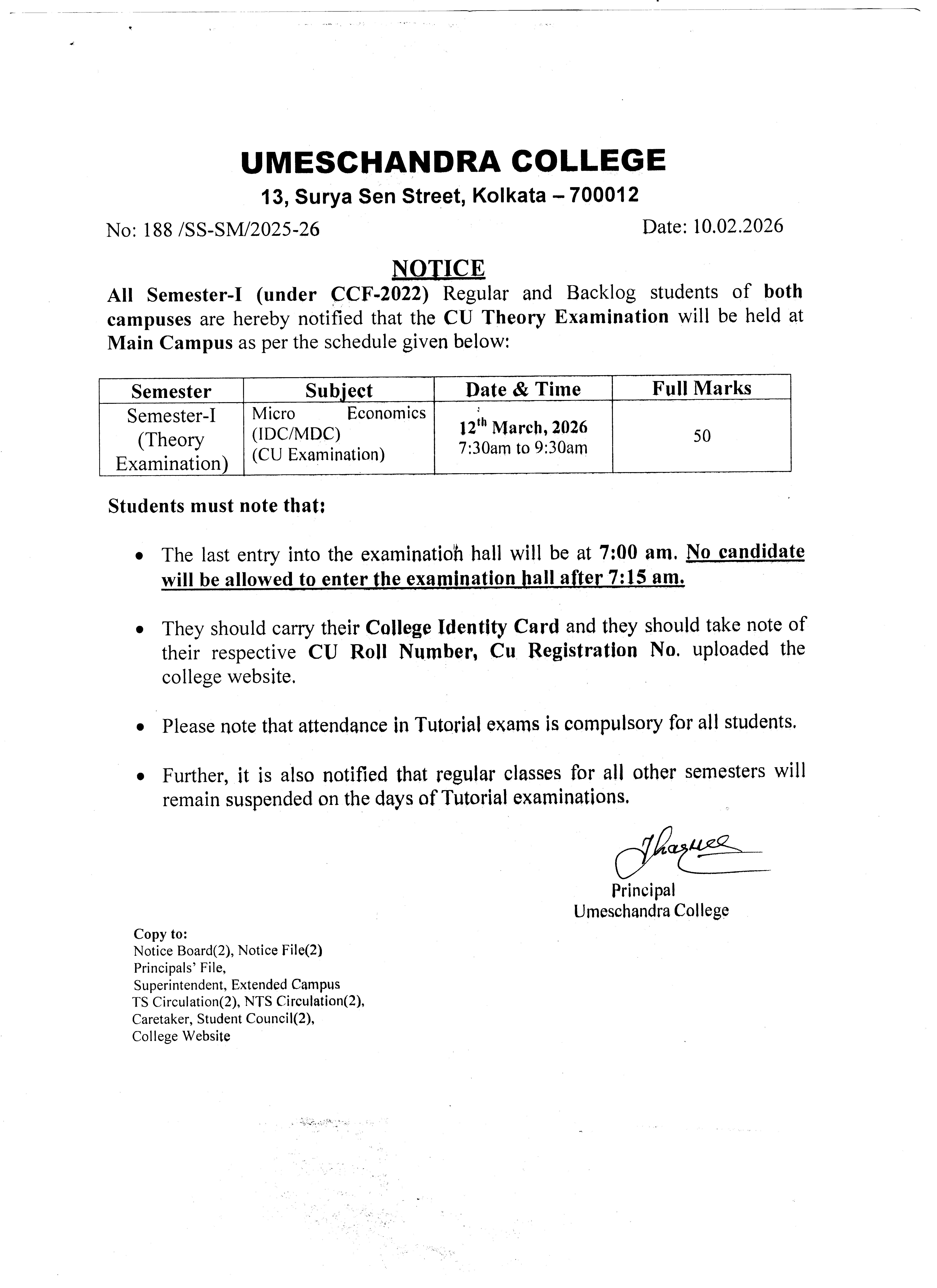 News : Semester-I Theory Examination Schedule