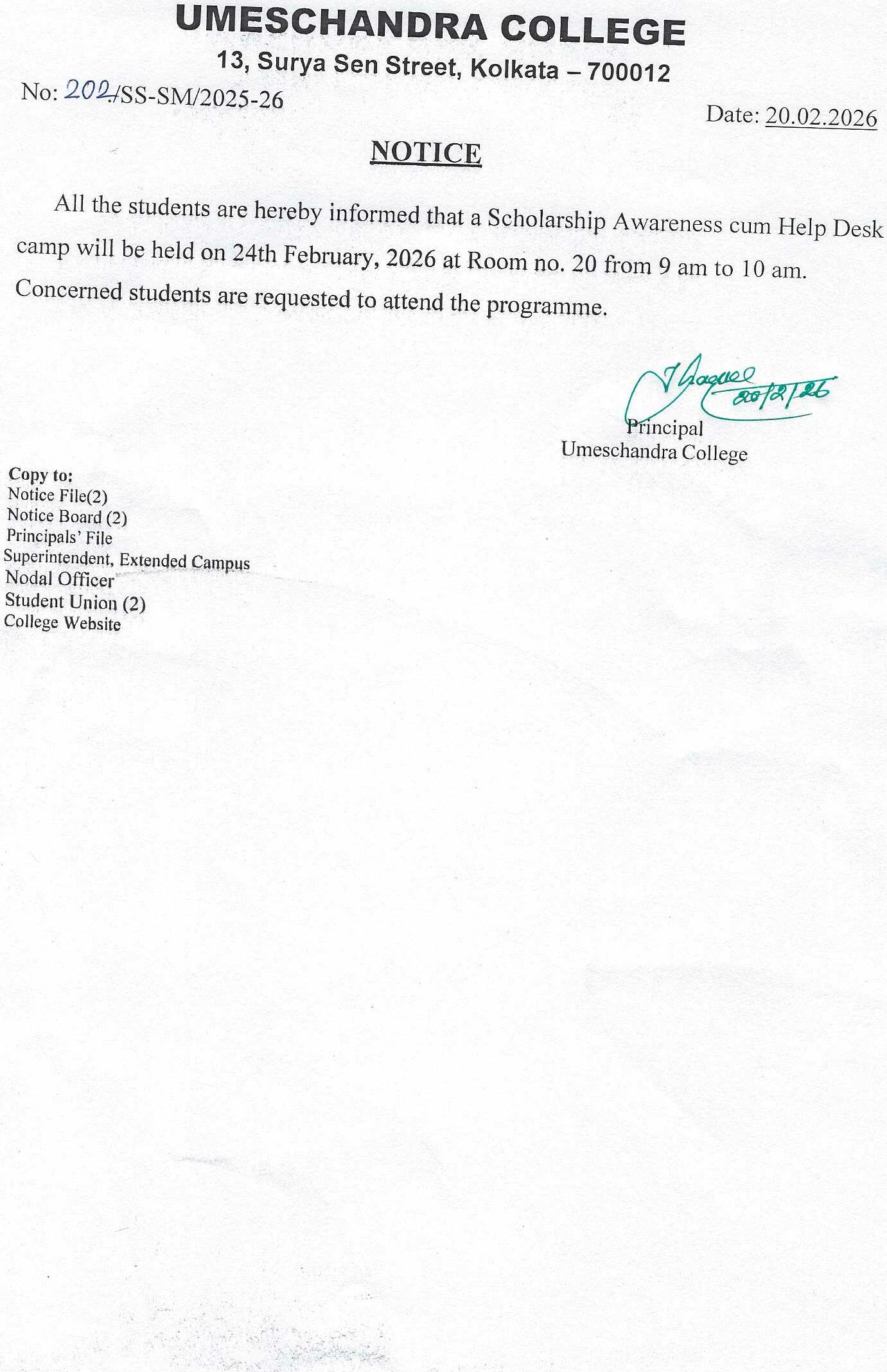 News : NOTICE FOR SCHOLARSHIP AWARENESS CUM HELP DESK CAMP.