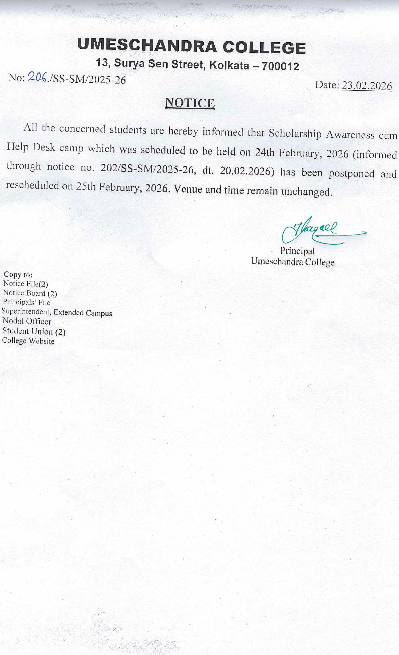 News : NOTICE FOR SCHOLARSHIP AWARENESS CUM HELP DESK CAMP.