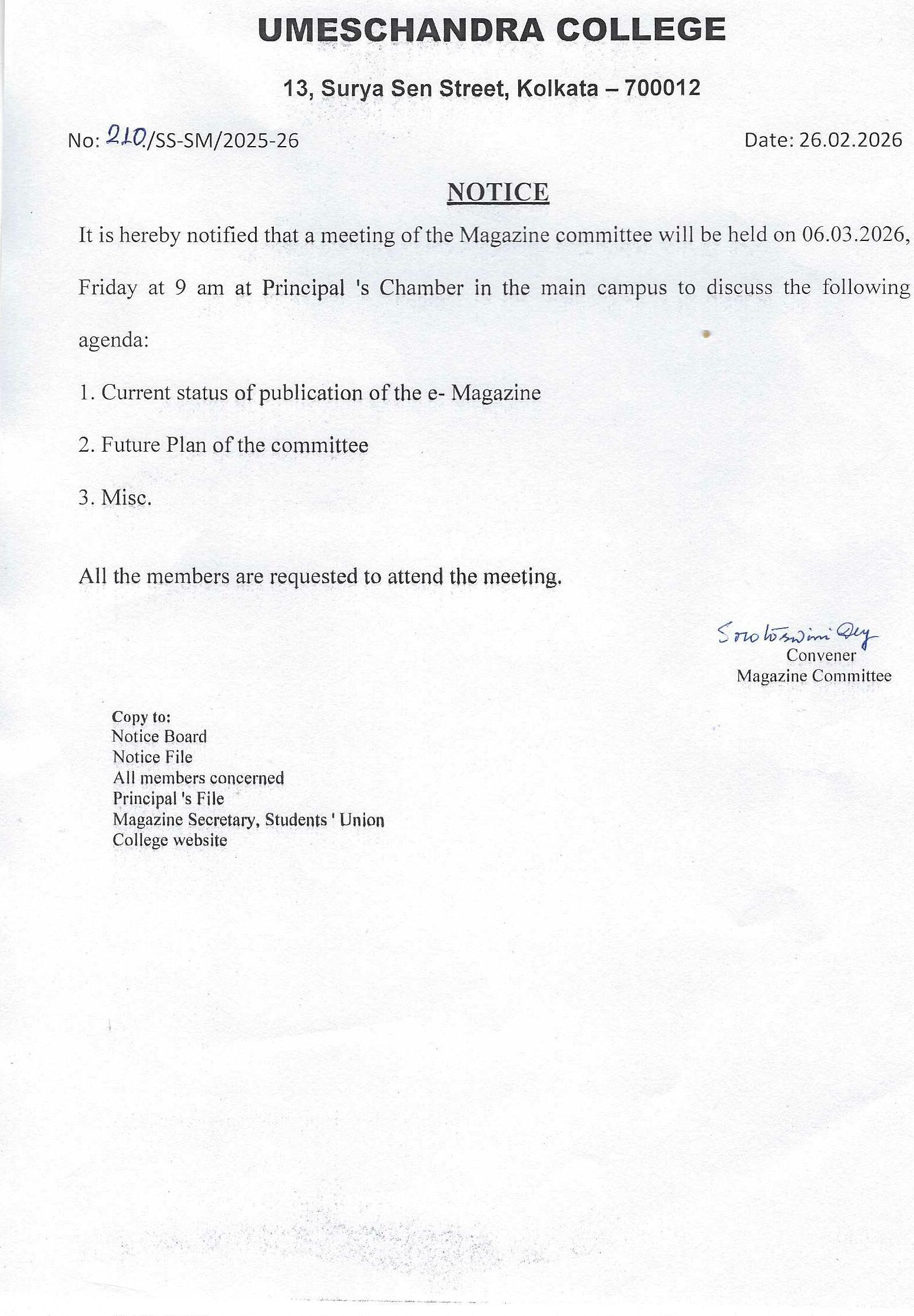 News : NOTICE FOR MAGAZINE COMMITTEE.