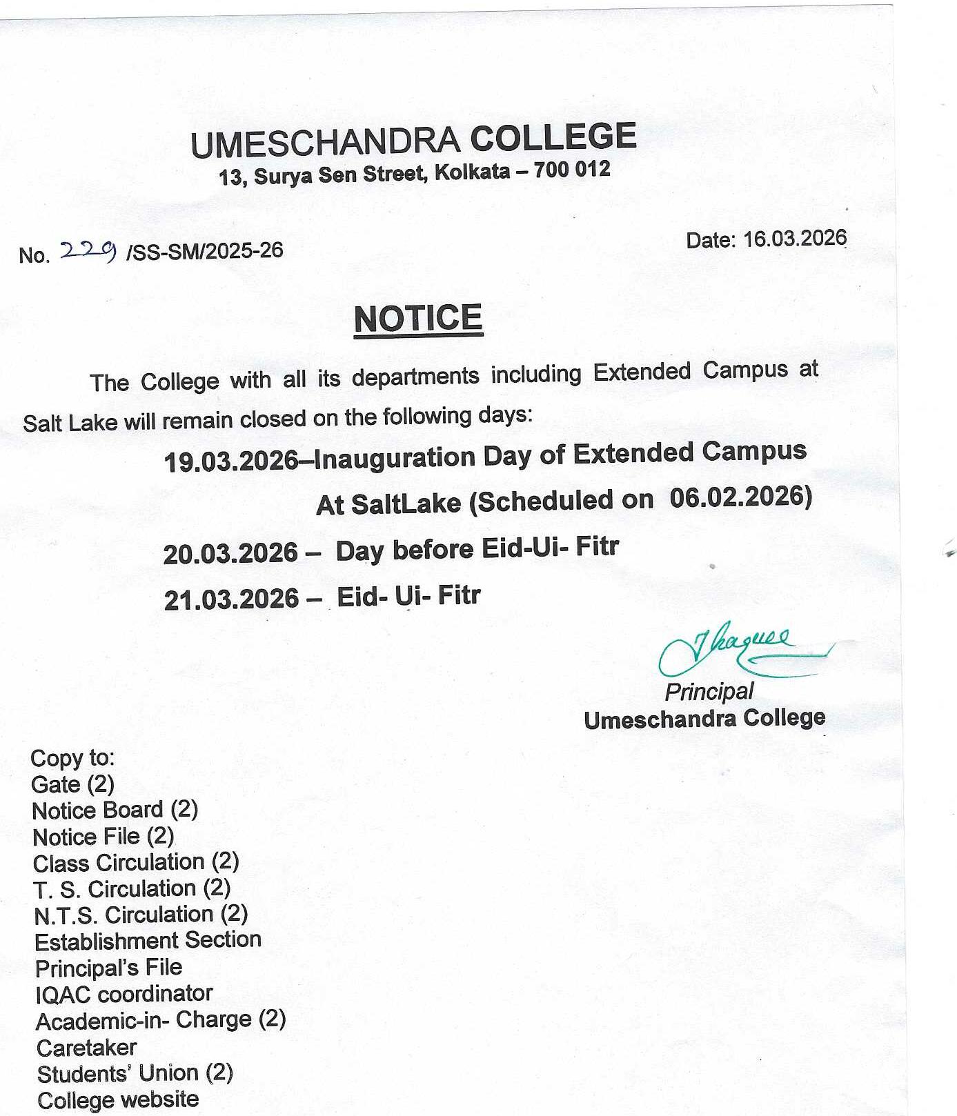 News : NOTICE FOR HOLIDAYS.