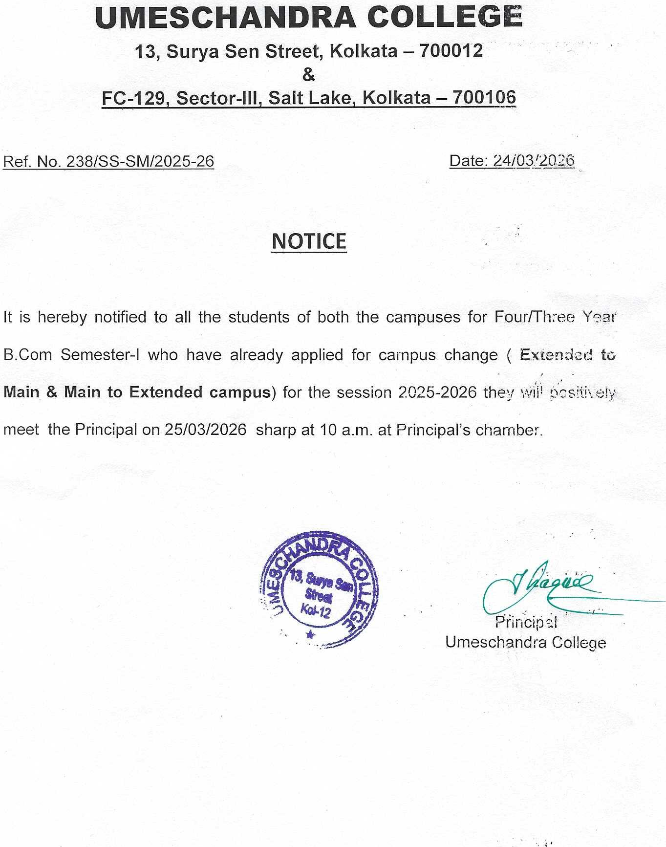 News : NOTICE FOR B.COM. SEMESTER-(FOUR/THREE YEAR) CAMPUS CHANGE.