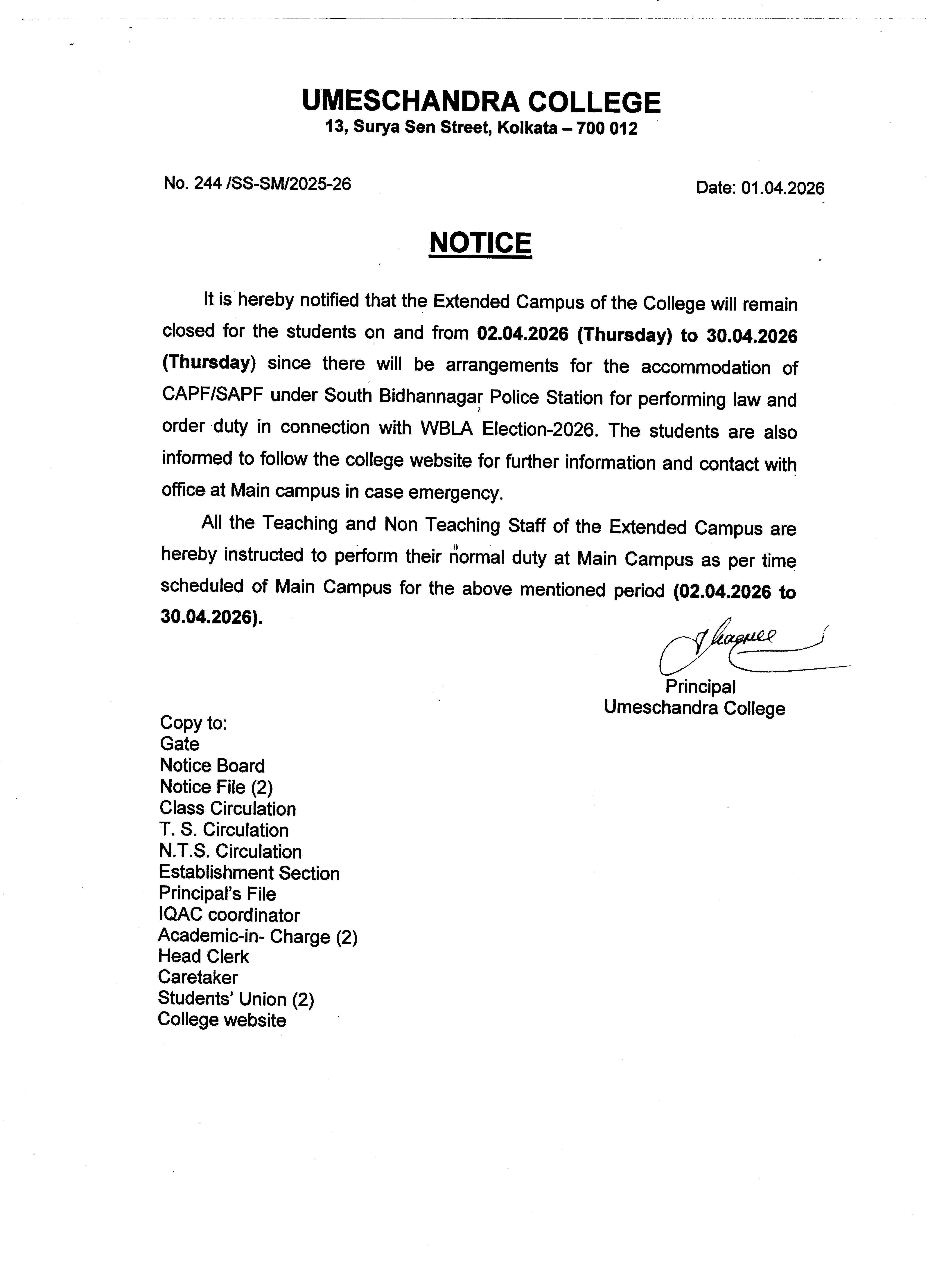 News : The College will remain closed on and from 02.04.2026 to 30.04.2026