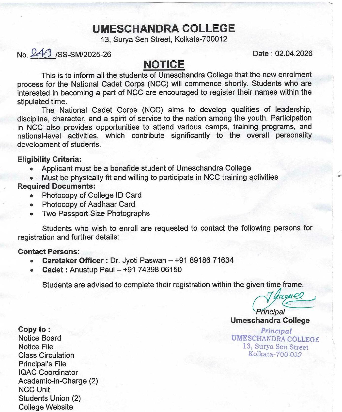 News : NOTICE FOR ALL STUDENTS ABOUT NEW ENROLEMENT PROCESS FOR THE NCC.