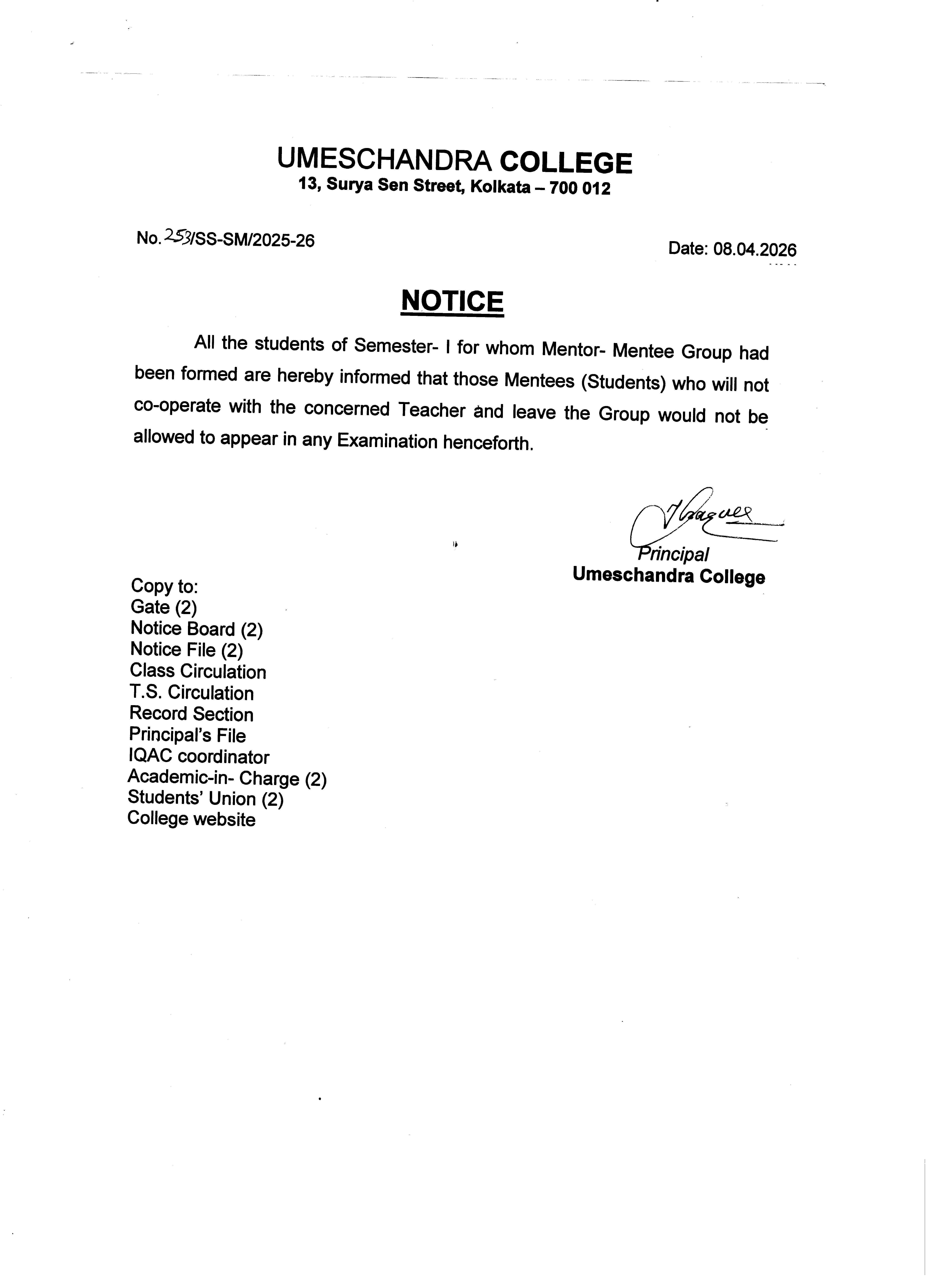 News : All the student of Semester-I are hereby informed that co-operative with the concerned Teacher