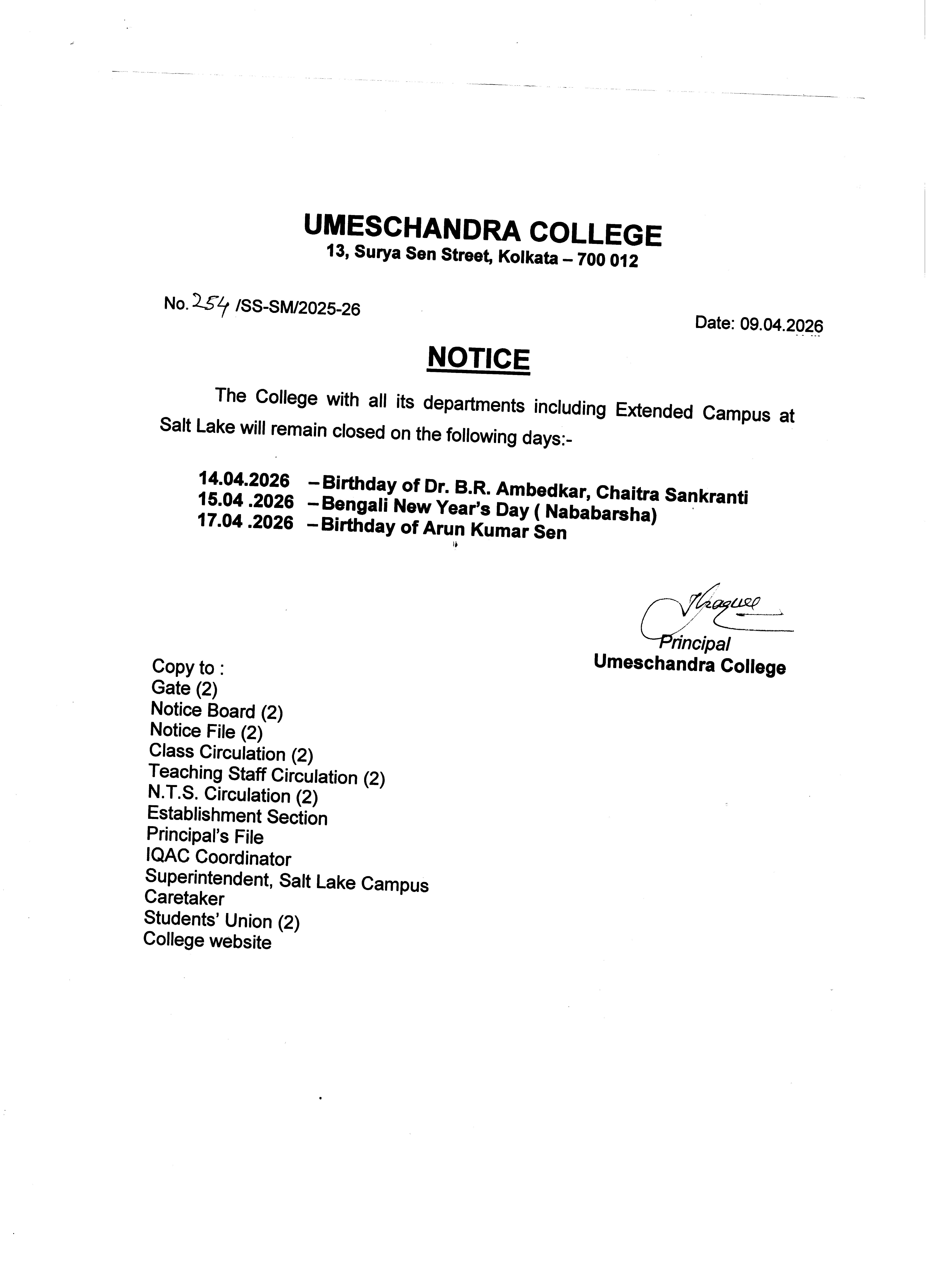 News : The college will remain closed on 14.04.26, 15.04.26, 17.04.26
